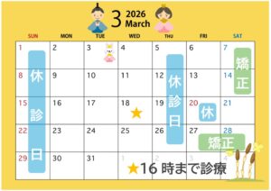 3月の診療日のお知らせです🌟